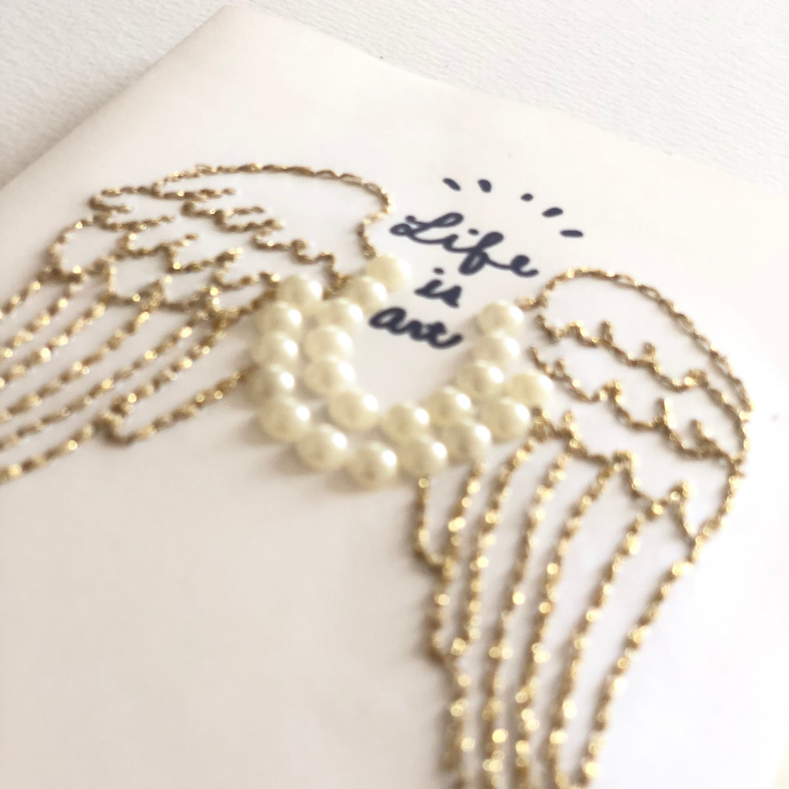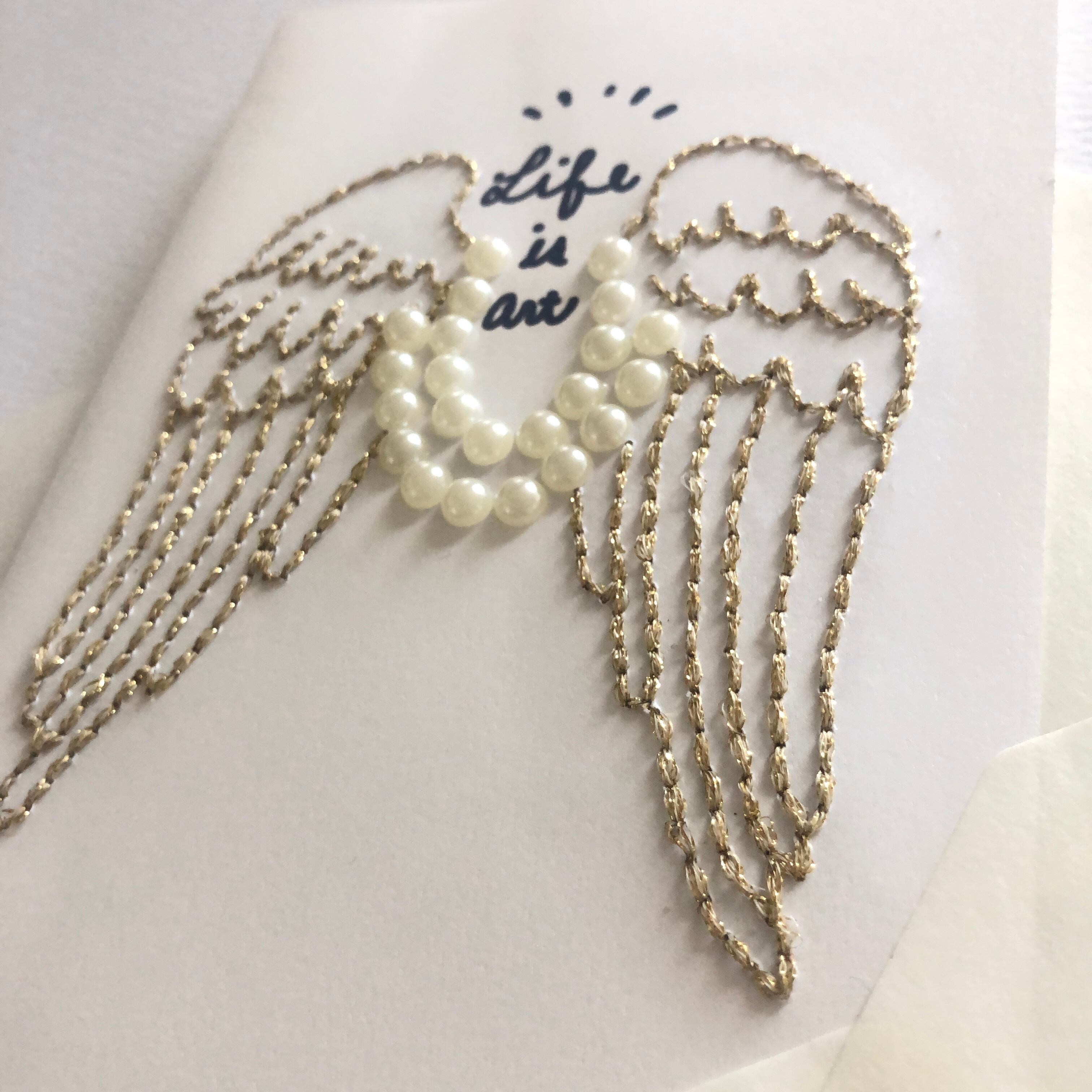 天使の羽モチーフの紙刺繍のカードです。