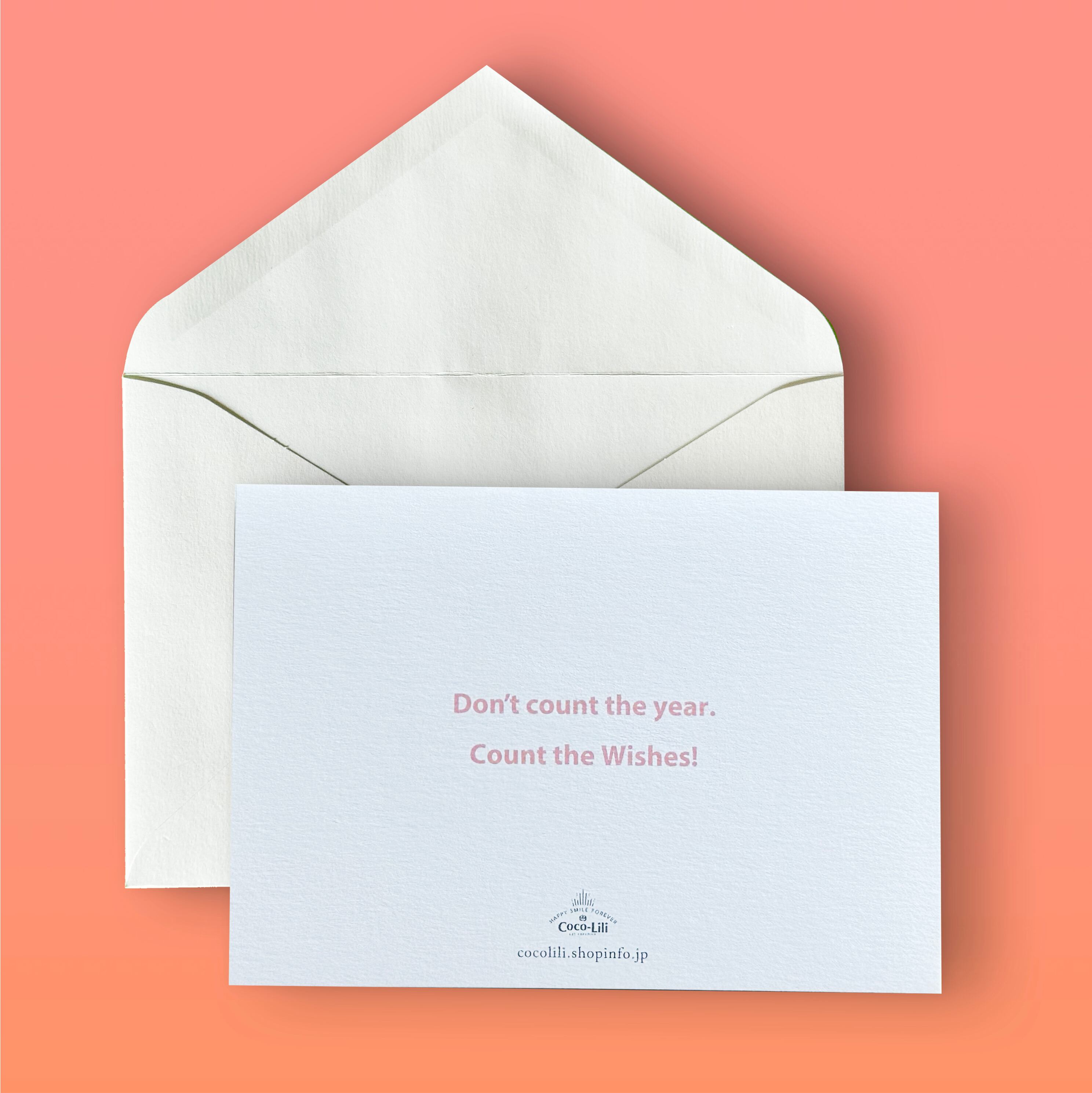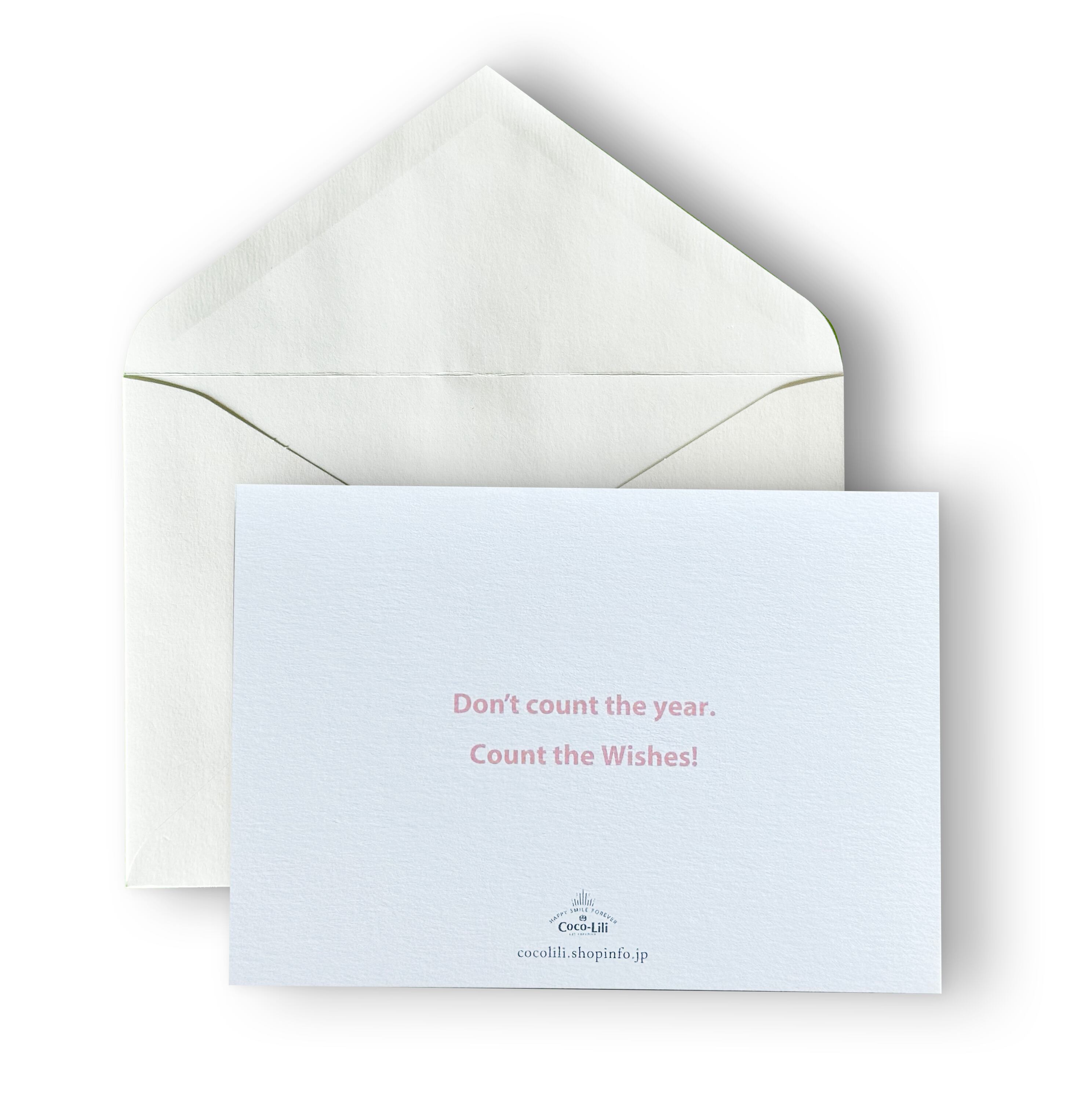 裏面の英文は「年を数えるのではなく、願い事を数えよう」です。