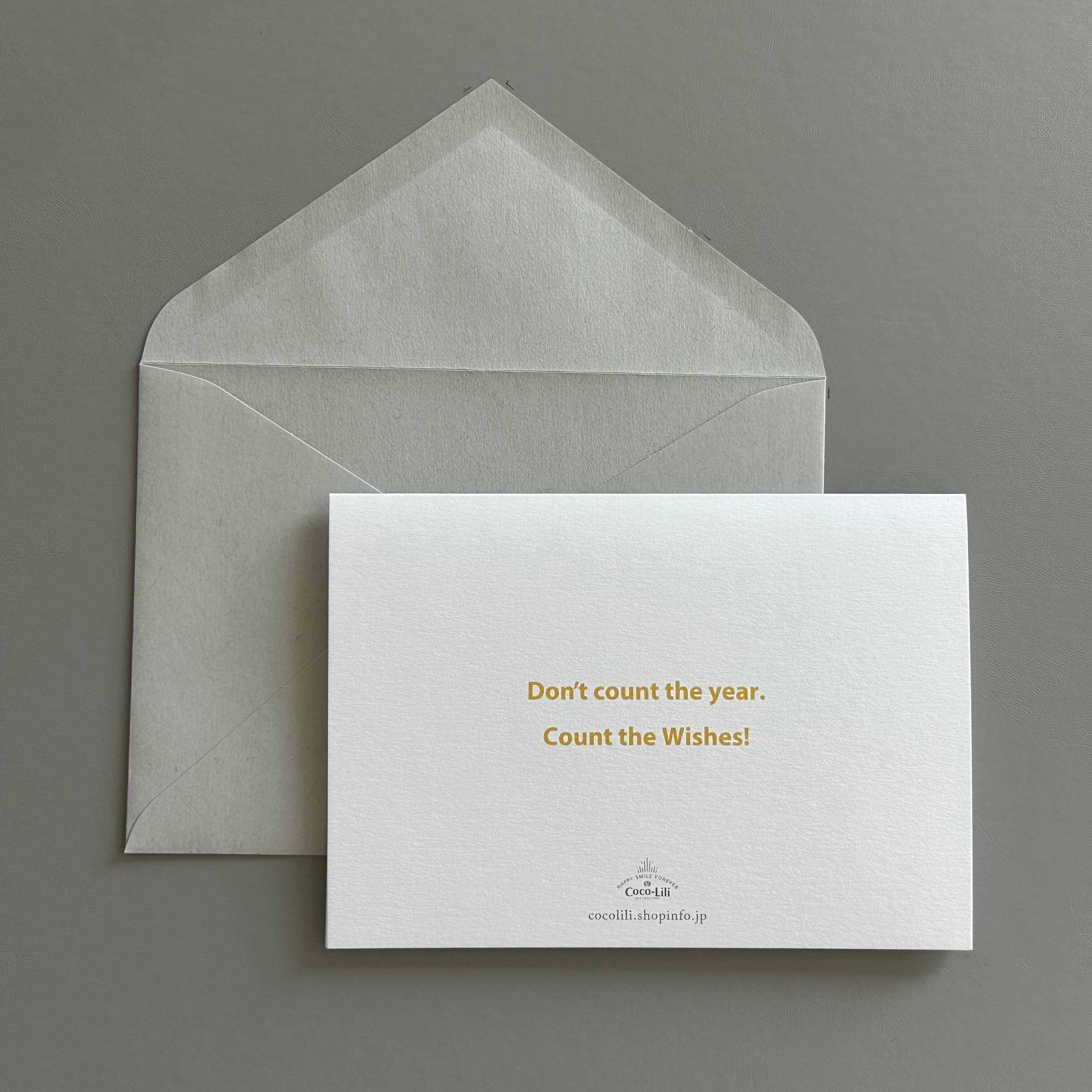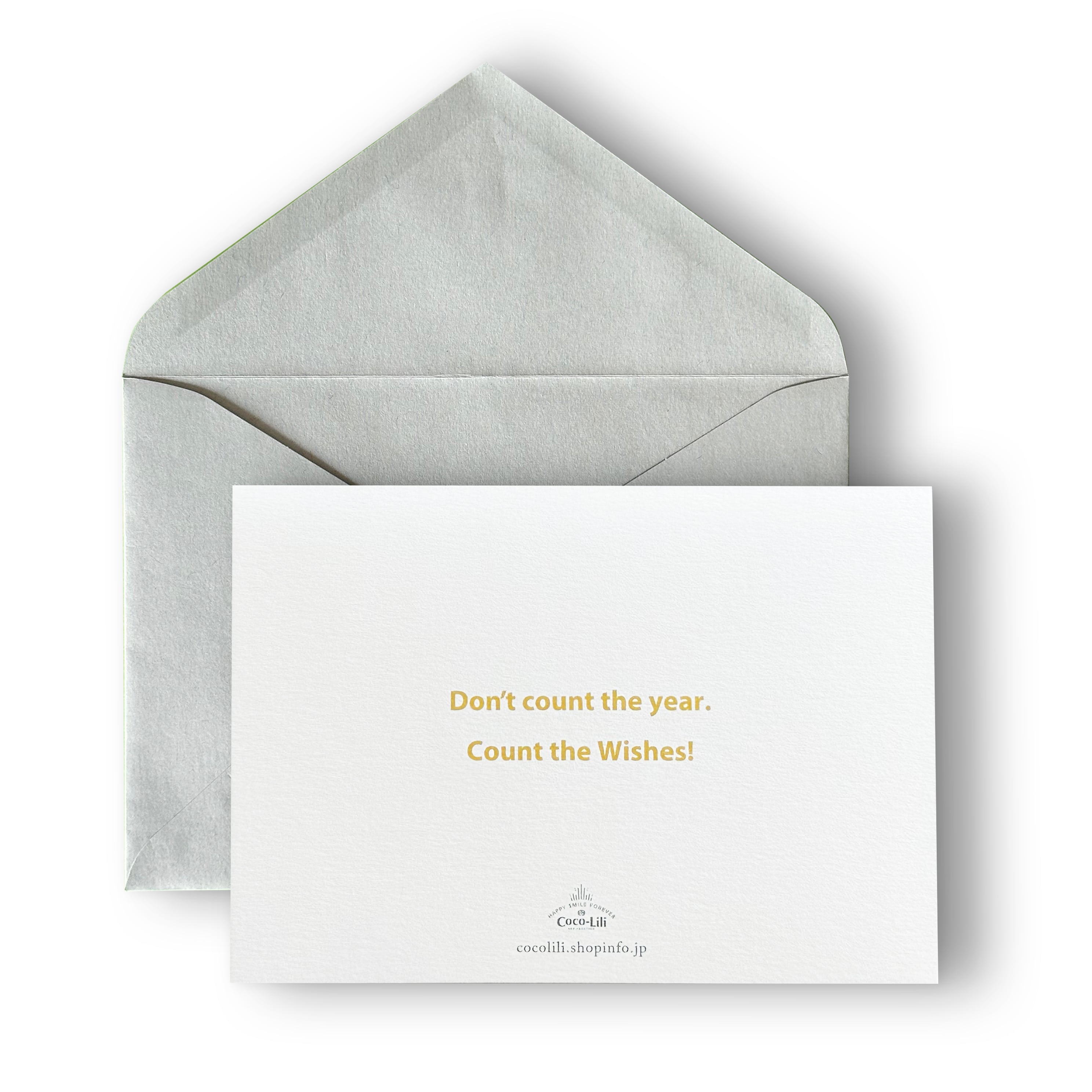 裏面の英文は「年を数えるのではなく、願い事を数えよう」です。